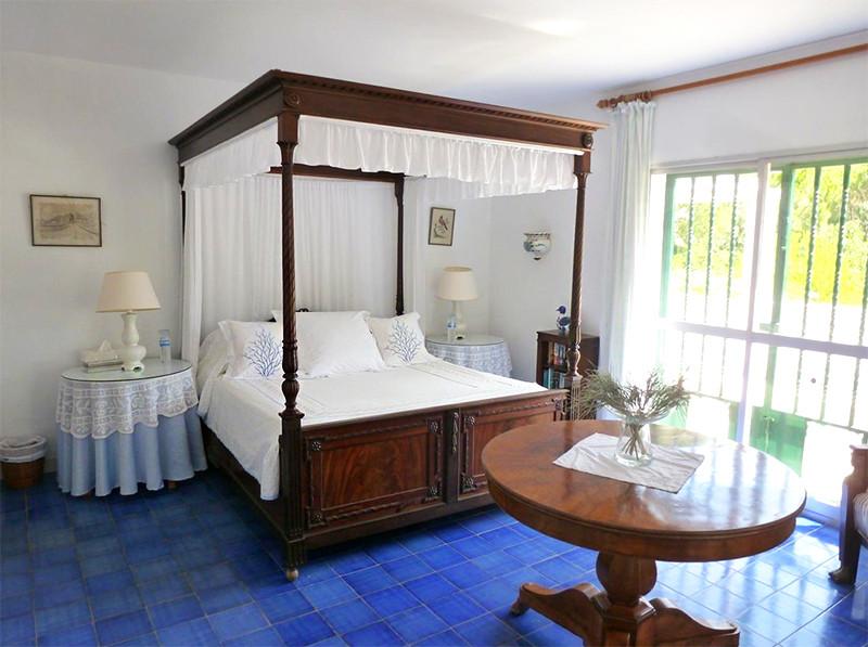 Twin/Double Bed with En-Suite bathrooms and French Windows opening onto a shaded