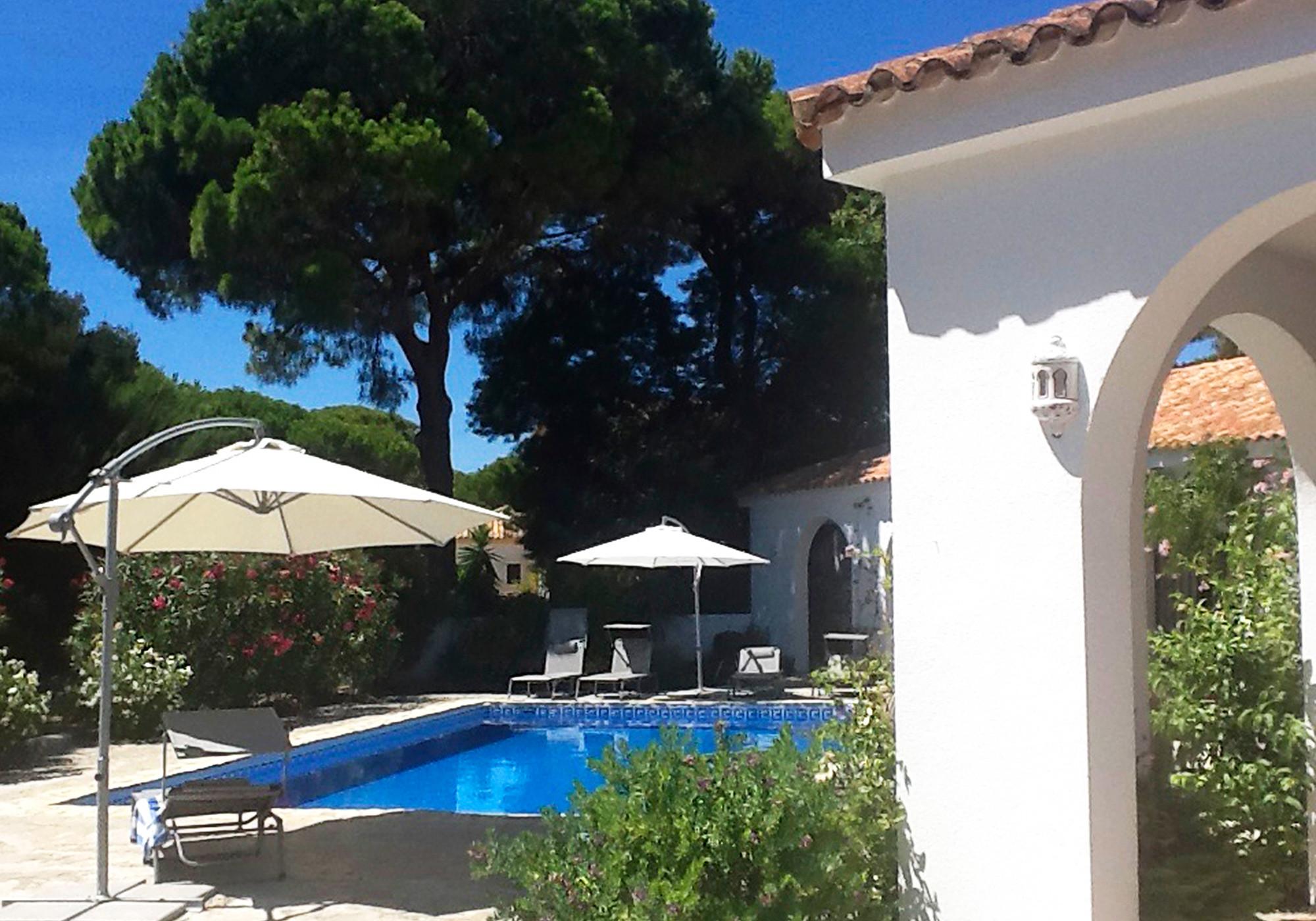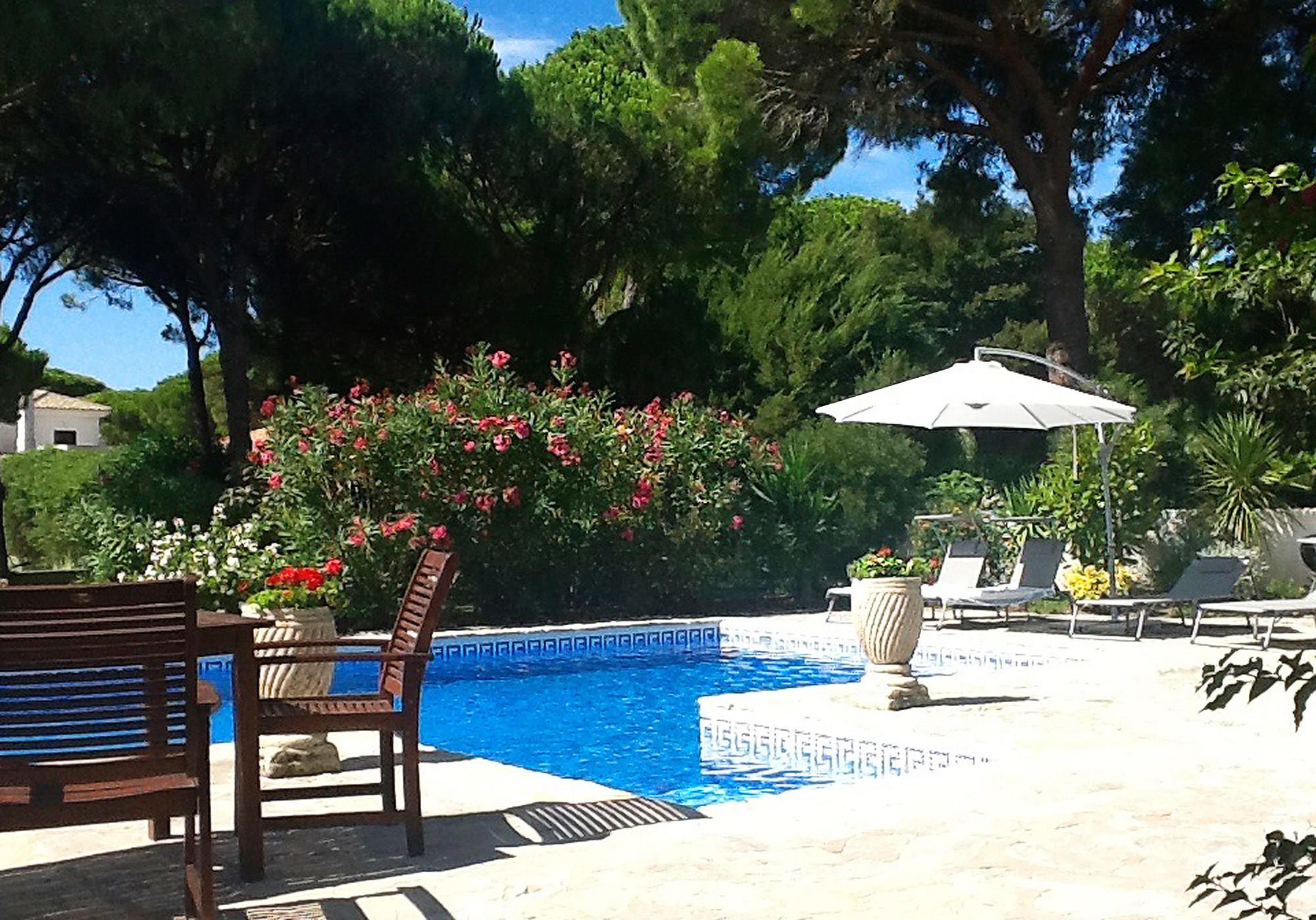 Pergola - Seating for 12 under a Wattled Roof with views over the Pine Forest and Terrapin Pool.