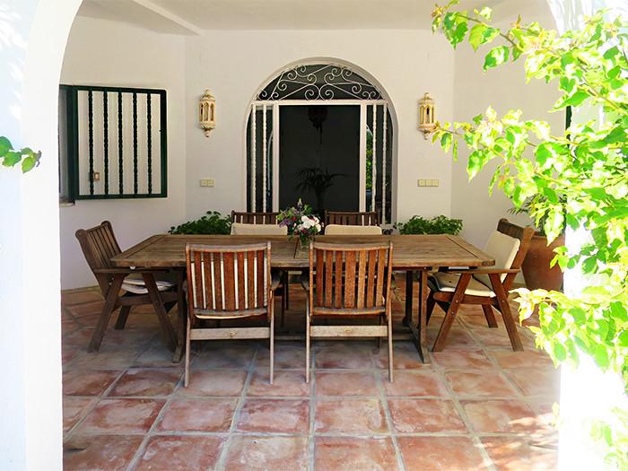 Terrace - 20m x 4m. Dinning Table seats 8 people, chairs and sofas.